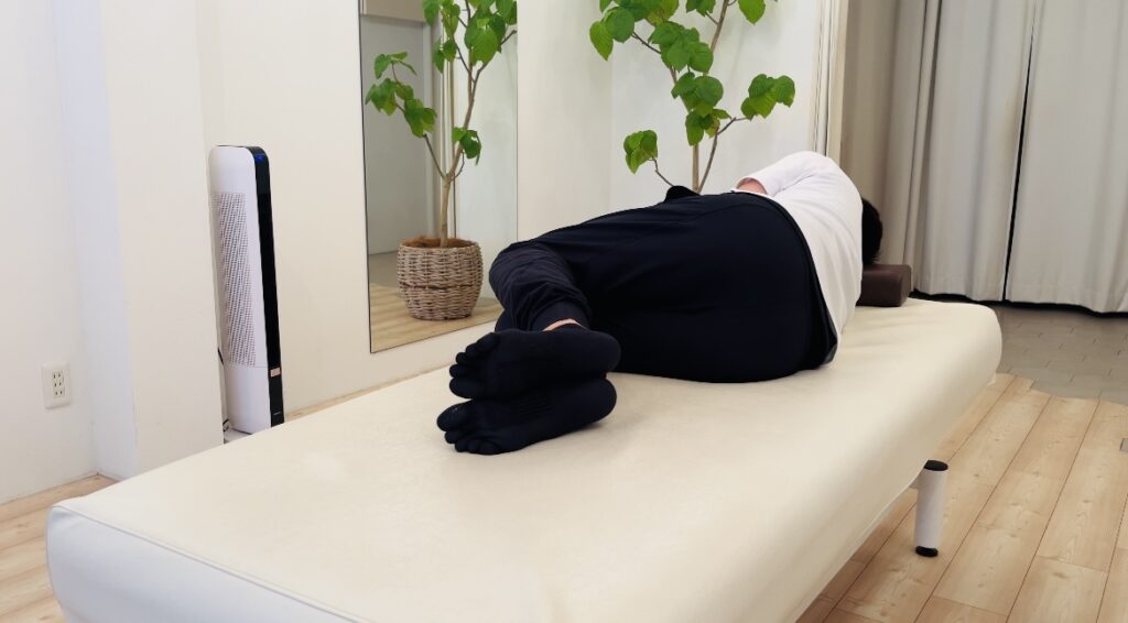 多くはお尻の筋肉の硬さが要因で坐骨神経を絞扼しているので、お尻の筋肉を緩めることに注目されがちです。