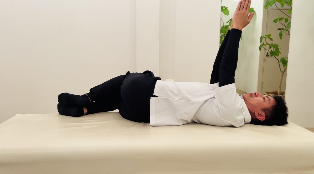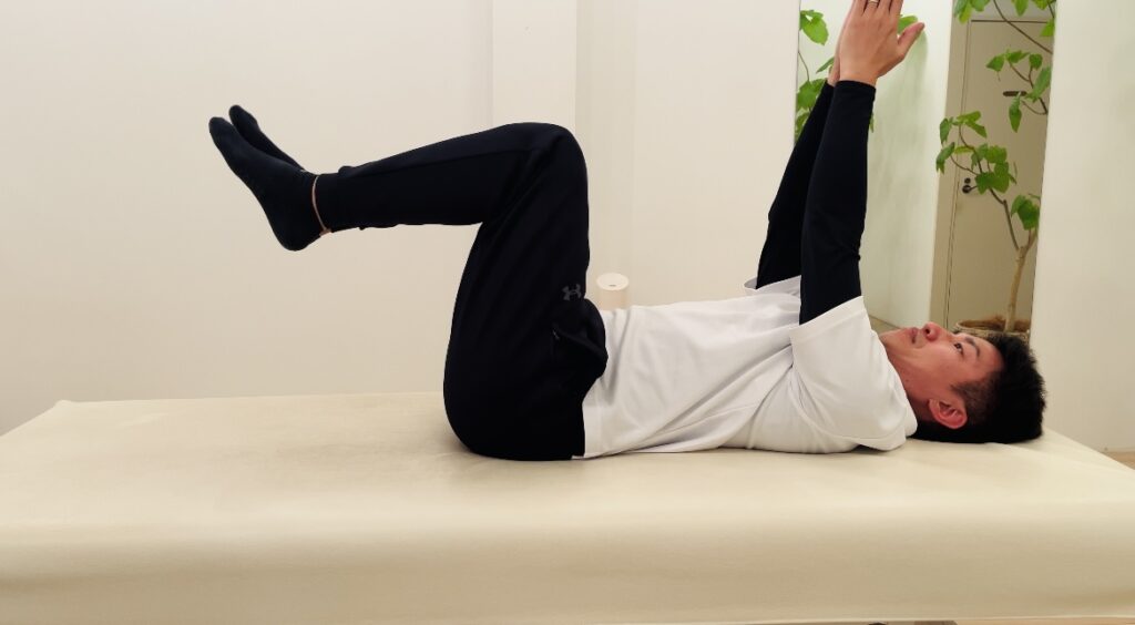 骨盤を引き上げた状態から、足を上下に動かします。左右ともに行います。